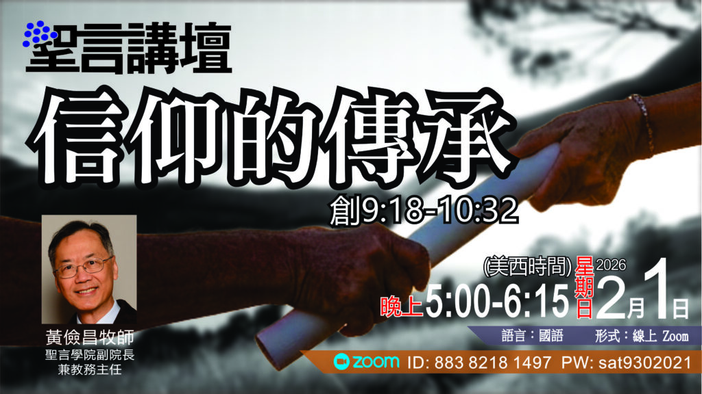 我們誠摯地邀請您參加即將舉行的【聖言講壇】!活動將於 2026年2月1日(星期日)美西時間下午5:00至6:15,透過 Zoom 平台 舉行。